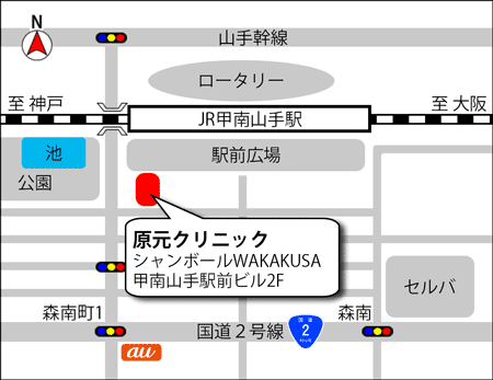 当院はJR甲南山手駅前(歩いて1分以内)にあります。